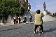 I take some photos of the tour groups and the band, and of the Japanese lady sitting on her stool in front of the band while taking photos of something else, and of some chaps suspended on ropes painting the front of the Archbishop's Palace. Then wander west away from the Hrad and take a few pics of the Toscánský Palace. I end up at the top of Úvoz; it's quiet and peaceful, and the buildings look super in the morning sun. |
