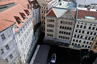 As I walked though the South Gardens, immediately below the Castle walls – on my only sunny morning in Prague – I enjoyed the views over the city and of the clean red roofs of the buildings below. Later in the day I walked over the Charles Bridge and climbed the eastern, Staré Město, bridge tower to look down on the buildings on the other side of the Vlatava, and for a view of the great bulk of the Hrad and the dominating spires of St Vitus Cathedral.